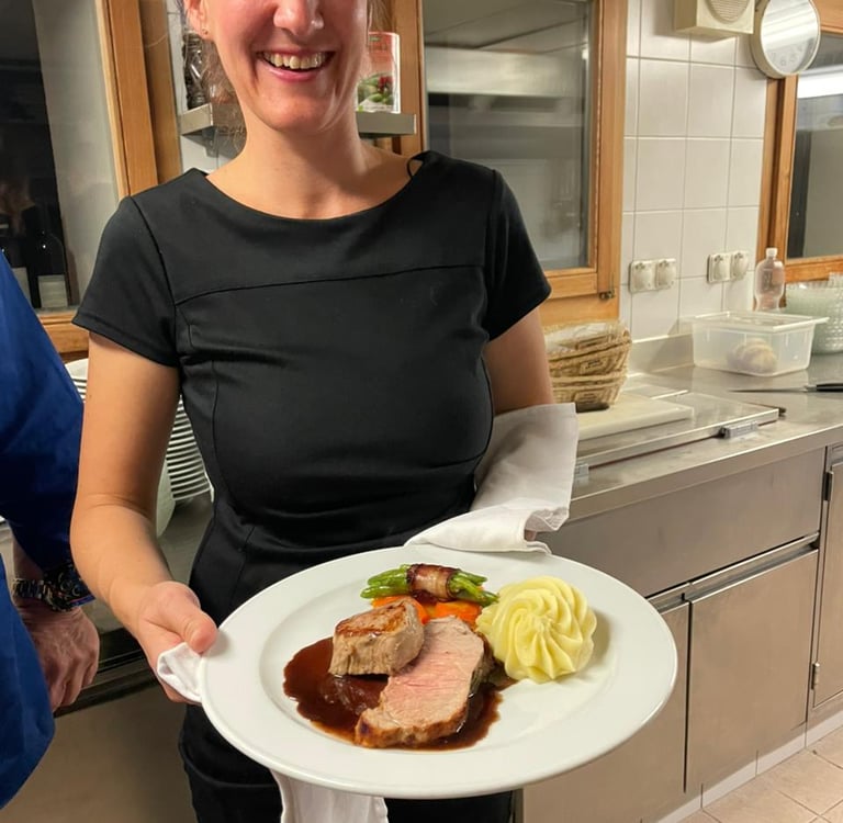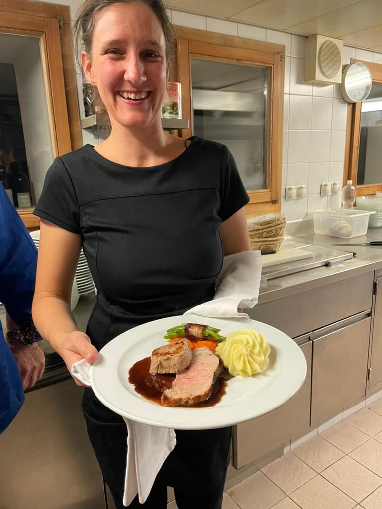Mal mit Kochschürze, mal mit Wanderschuhen – aber immer mit Freude dabei.